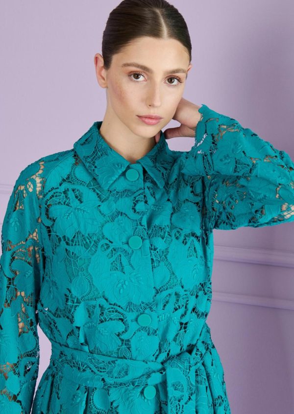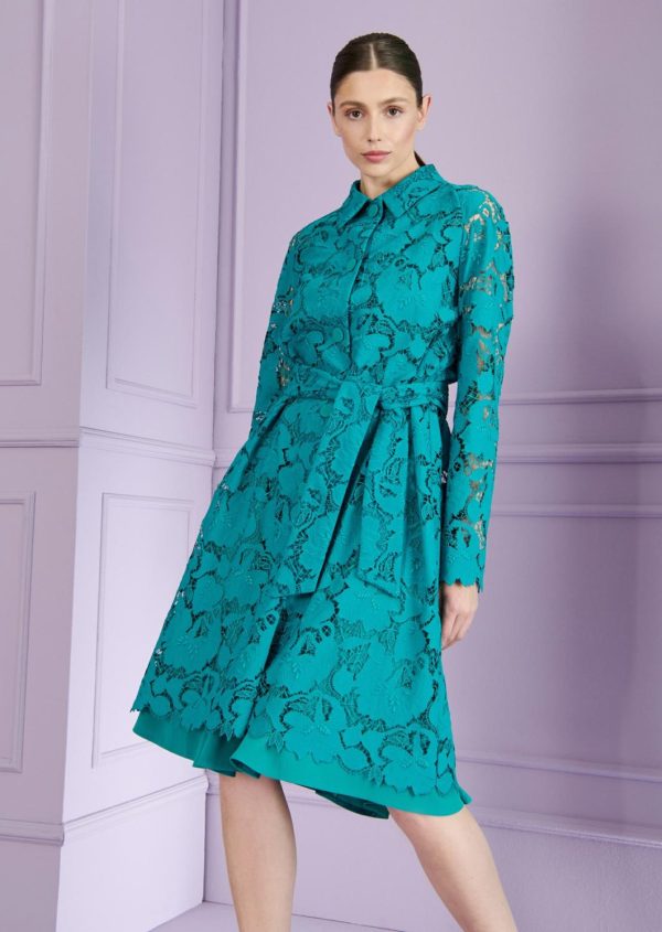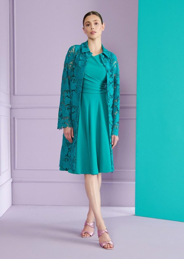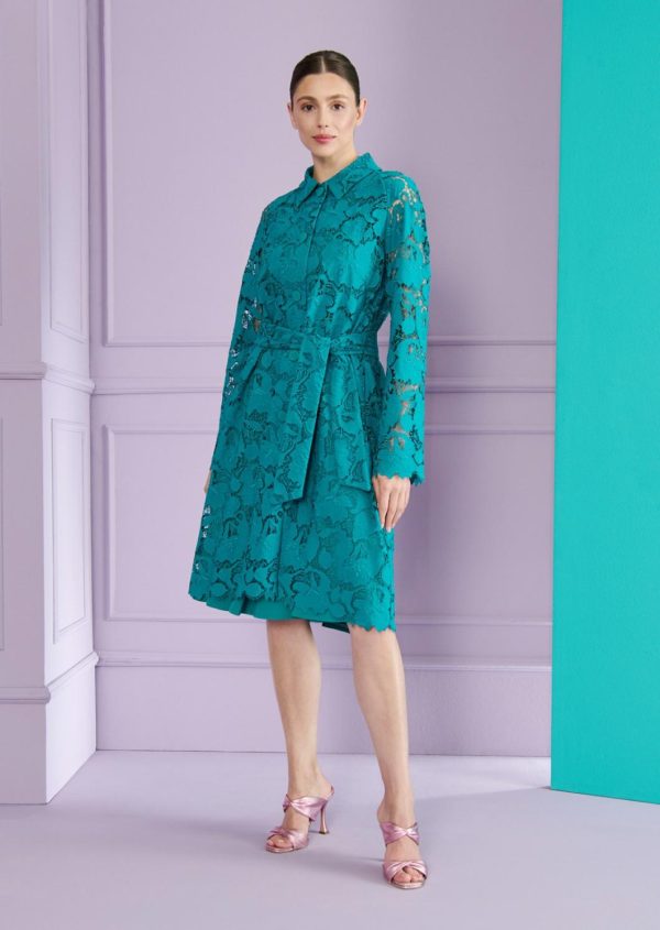 Lace get the celebration started! Whenever a special event is around the corner, our super chic lace coat is ready to go. Whether a wedding, birthday or concert – on beautiful spring and summer days in particular, what you need is something light to wear with your cocktail dress. And what could be better than stunning lace? The cut of this coat is loose and simple. This lets the fabric comes into its own. You can, however, also cinch it in at the waist using the belt. This piece is especially popular for church weddings: It lets you cover your arms while keeping your look light and care-free, as it should be for such an occasion.