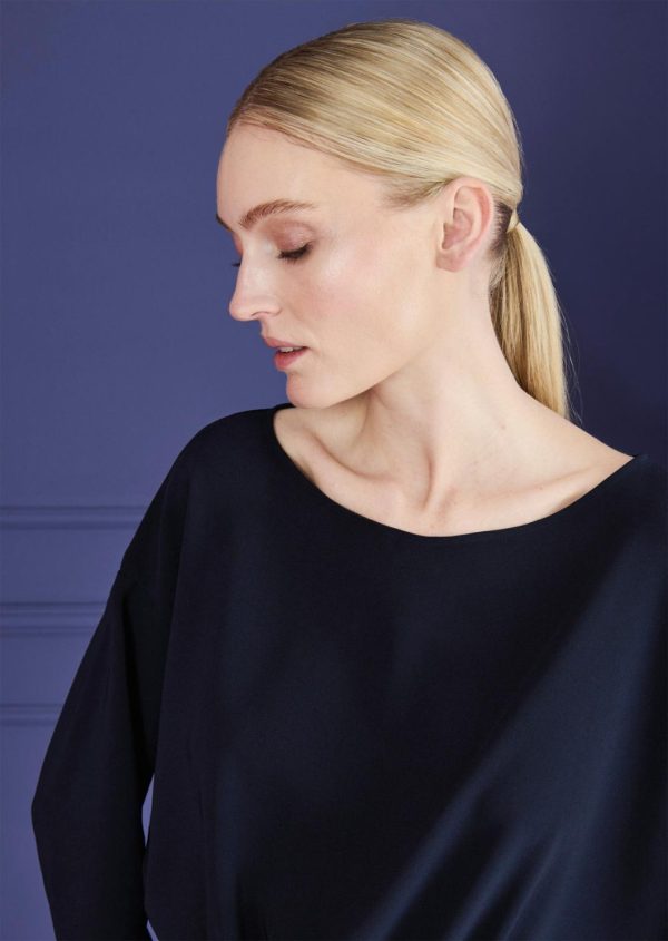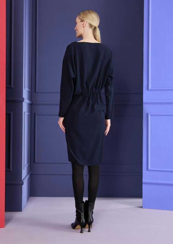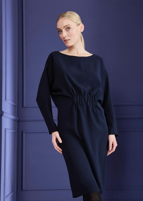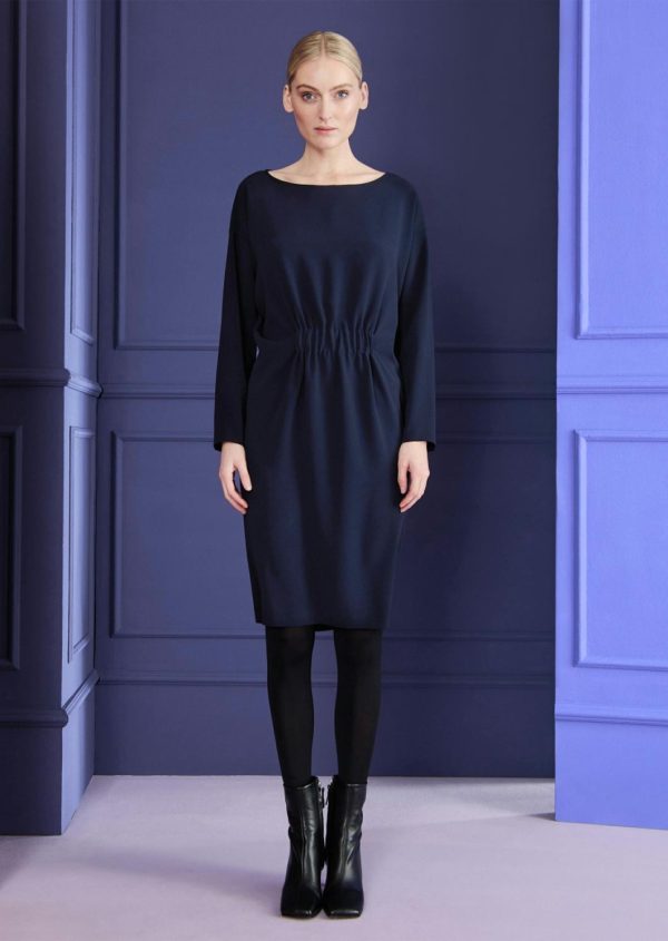 The calendar is packed again: a business meeting here, a get-together with friends there, an important lunch appointment … Luckily, you’ll always be perfectly styled in this easy day dress. This loose fit dress is simple, versatile and amazingly comfortable. Elasticated details at the front and back create a flattering silhouette, but don’t affect the comfortable, loose fit. Long sleeves make this look so versatile, whether at work, in your free time or even at an evening event. We made this dress from cady, which flows beautifully. Simply style it with flat shoes, booties or heels.
