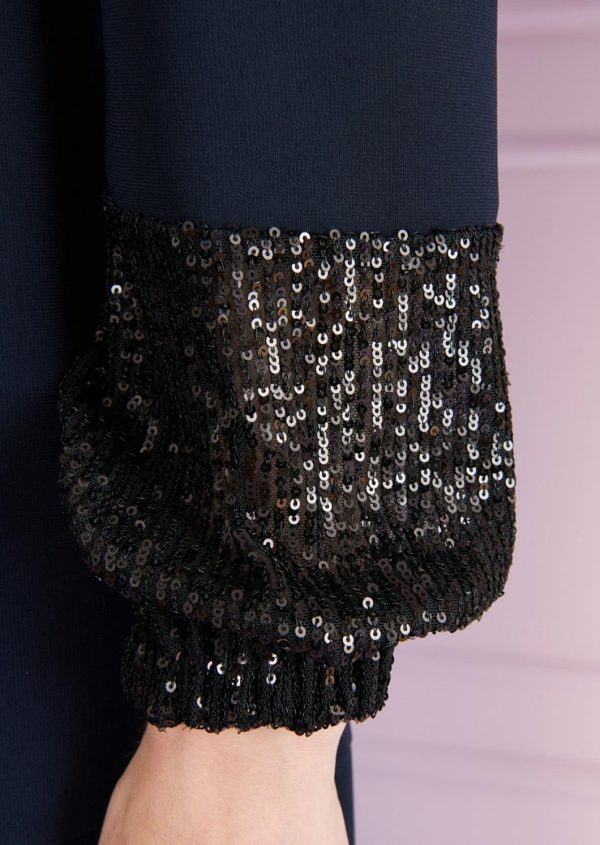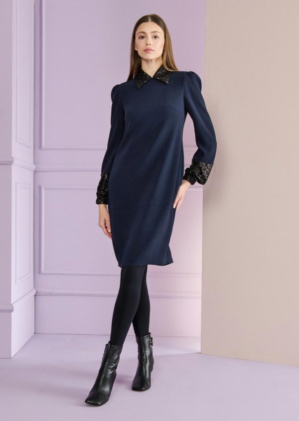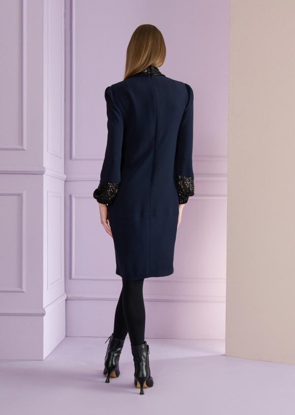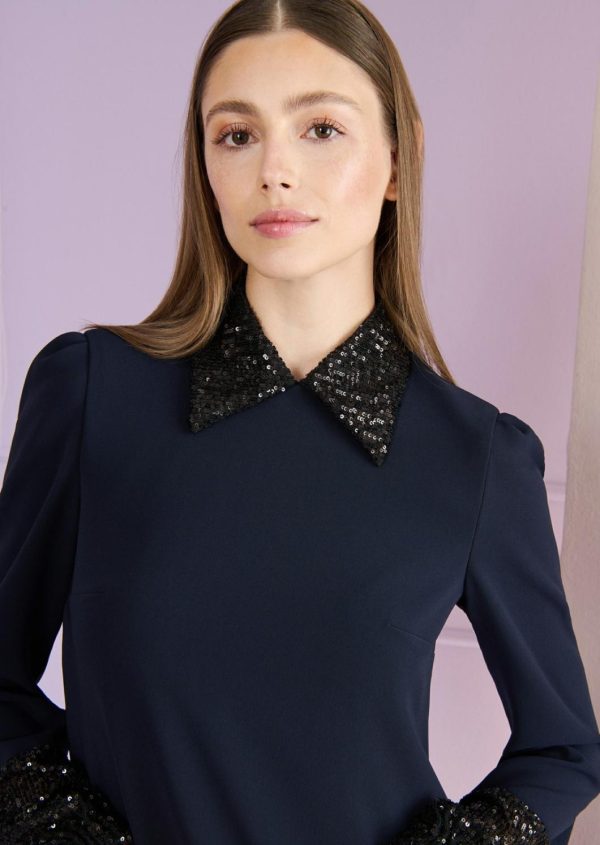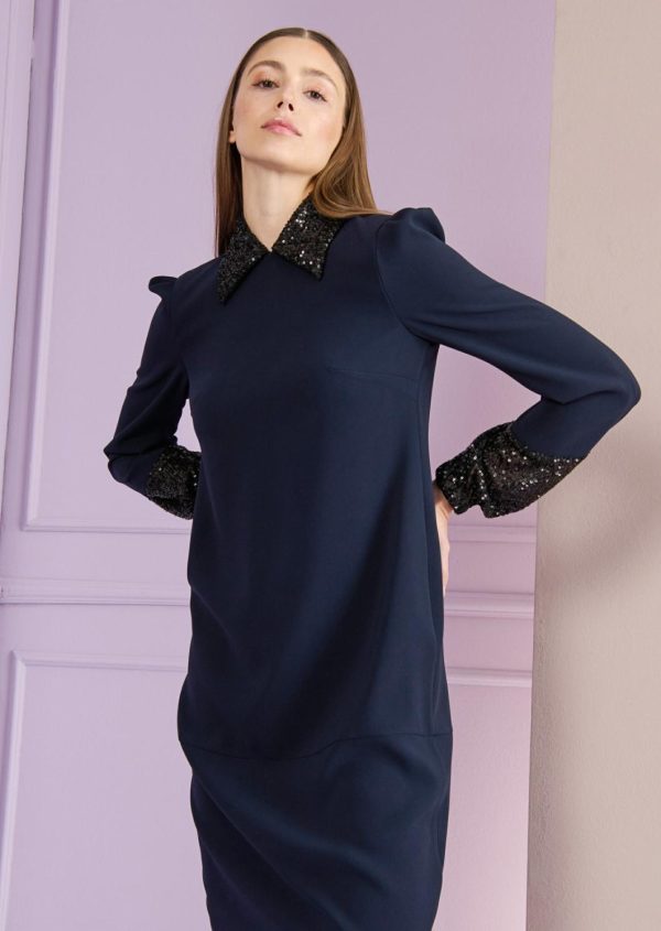 I see your true collar shining through! and why? because it sparkles so beautifully on this uncomplicated cocktail dress thanks to the shimmering sequins. And sequin cuffs on the long sleeves add even more glamor. Otherwise, this versatile look made from flowing stretch triacetate crepe is sleek and elegant. The loose cut makes it easy to wear at all times, even for a long dinner in the evening. Perfect with flat ballerinas, more feminine with heels…