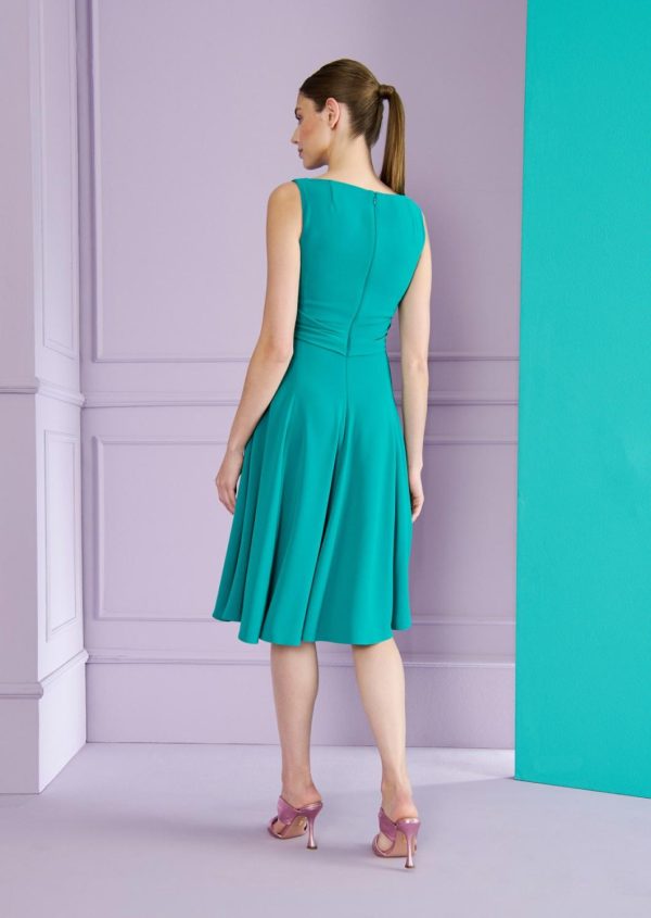 Our designers have concocted a truly feminine and effective design. This day dress features a beautiful, get-you-noticed, accentuated neckline. Here, the shoulder strap lies directly on the shoulder, providing both security and freedom of movement. Sophisticated draping accentuates the narrow waist. The wide skirt sways beautifully with every step. However, it is the material, a dynamic, flowing cady fabric, that really makes this dress stand out. Wear it to work with a chic blazer. Come the evening, just slip into some stylish pumps, add a clutch, and an edgy leather jacket.