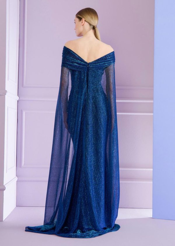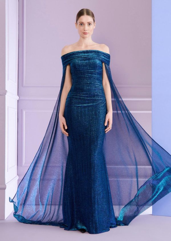 working hard on your golden globe award speech? or do you have other prizes that are up for grabs in your sights? then you simply have to order this evening gown because our dream robe delivers everything award winners need. the cape flows around you like the aura of a charismatic diva. the color caresses your skin. the free shoulder offers the perfect amount of sex appeal, which the red carpet makes all the more intense. on top of that your figure will really set the scene thanks to the elastic voile and also the iconic draping so well known to talbot runhof dresses. wear sparkling jewelry for that globe grabbing look, or simple and sleek earring studs and a singular diamond ring. that way, instead of simply practicing your thank you speech, you’ll be the one giving it on the night.