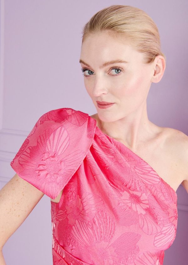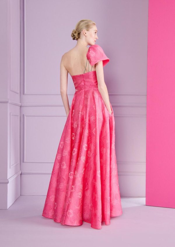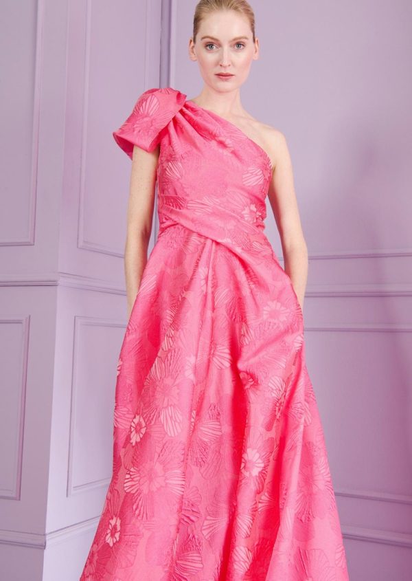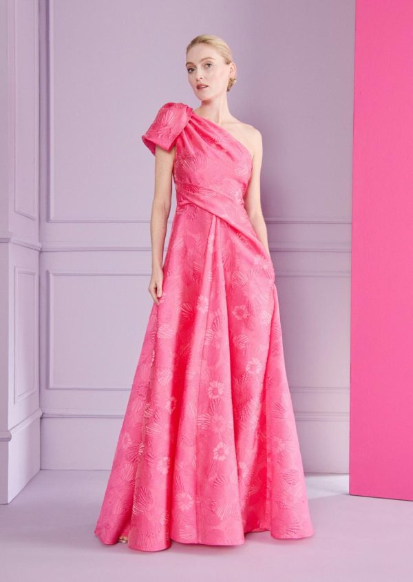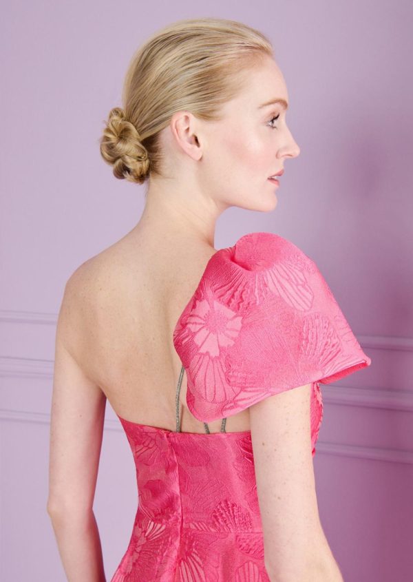 This dress makes glam look easy. Because with this dress, it is. This one-shoulder piece features a floral pattern on an elegantly flowing, lightweight jacquard that traces the contours of your silhouette. A draped bow at the shoulder creates an opulent, striking effect, while the plunging back neckline allows you to show some skin. Rhinestone ribbons sparkle beautifully in the evening light, and make sure that everything fits perfectly. This is the dress that is sure to impress as you step onto the red carpet and strike a seductive pose, looking over your shoulder to reveal your beautiful back…