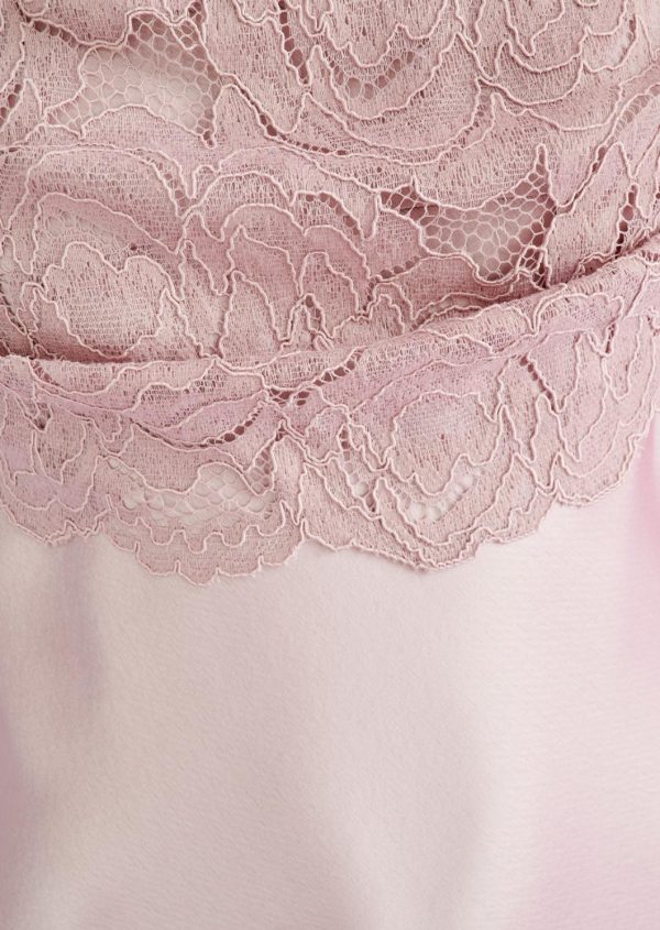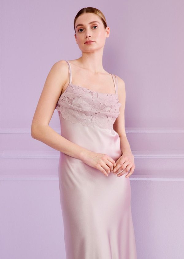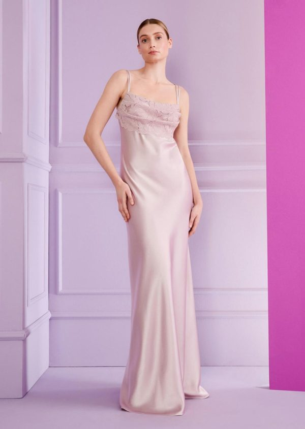 Turn night to day and become a stylish glamor queen in this lingerie piece. Our new slip dress in shimmering crêpe satin flows gently over your body and creates a seductive, feminine look. The bust area of this strappy evening dress is trimmed with fine lace, complementing the lingerie look perfectly. This delicate, elegant, no-frills piece will look great with glamorous accessories.