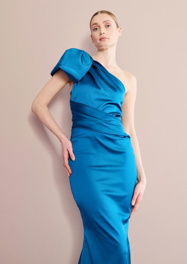 This dress makes glam look easy. Because with this dress, it is. This one-shoulder made of an elegantly flowing, shimmering stretch satin duchesse traces the contours of your silhouette. A draped bow at the shoulder creates an opulent, striking effect, while the beautiful back neckline allows you to show some skin. This is the dress that is sure to impress as you step onto the red carpet and strike a seductive pose, looking over your shoulder to reveal your beautiful back…