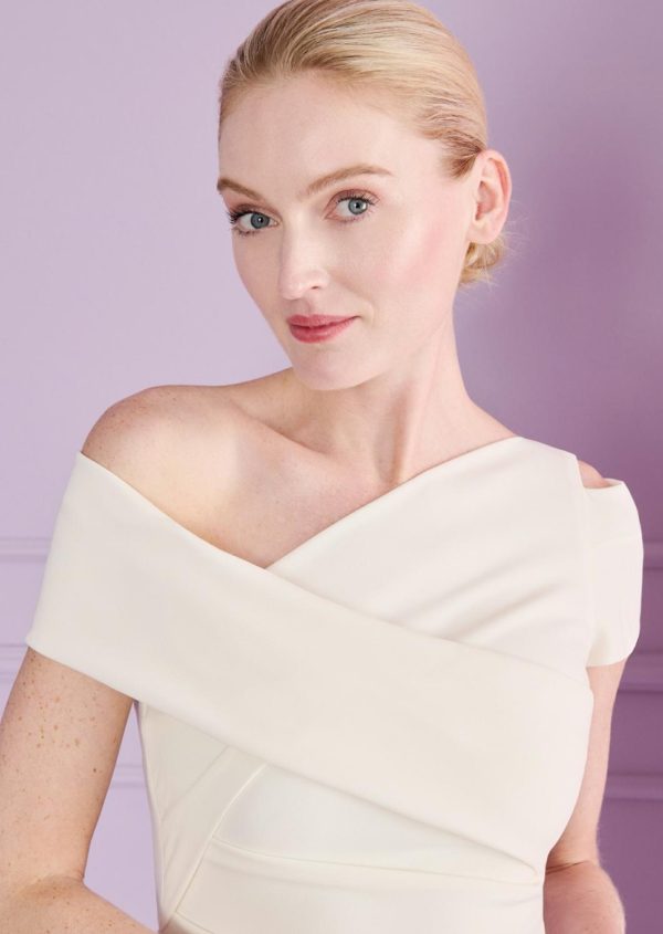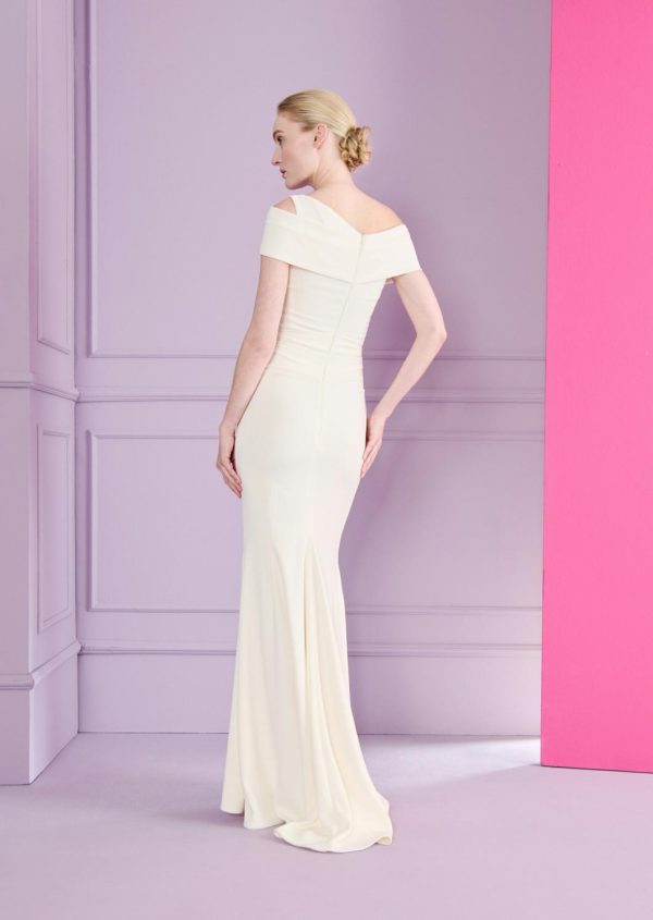 Modern and yet still feminine: that’s exactly the kind of statement our dress Bozza2 makes; perfect for the effortlessly casual city wedding. You’ll also be perfectly dressed for the church; the drapery takes care of that through the playful and subtle sex appeal of free shoulders while still remaining reserved and adequate. The material, a triacetate crepe, flows especially beautifully and feels amazing on your skin, so that you can simply spend the time enjoying your big day. The typical Talbot Runhof drapery and the fishtail skirt effortlessly define your silhouette. No matter if you’re celebrating at a hip city loft, or at a Michelin star restaurant for the wedding dinner, your guests are sure to congratulate you, not only on your nuptials, but also on your modern look.