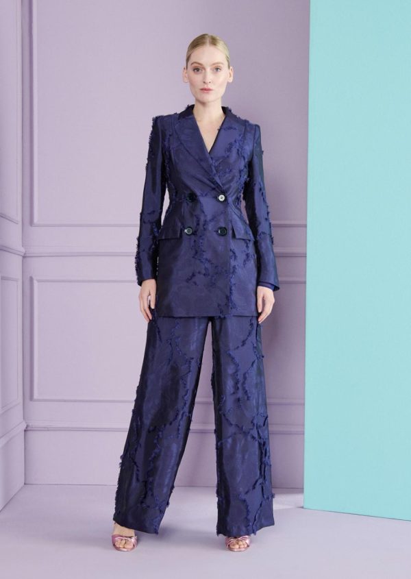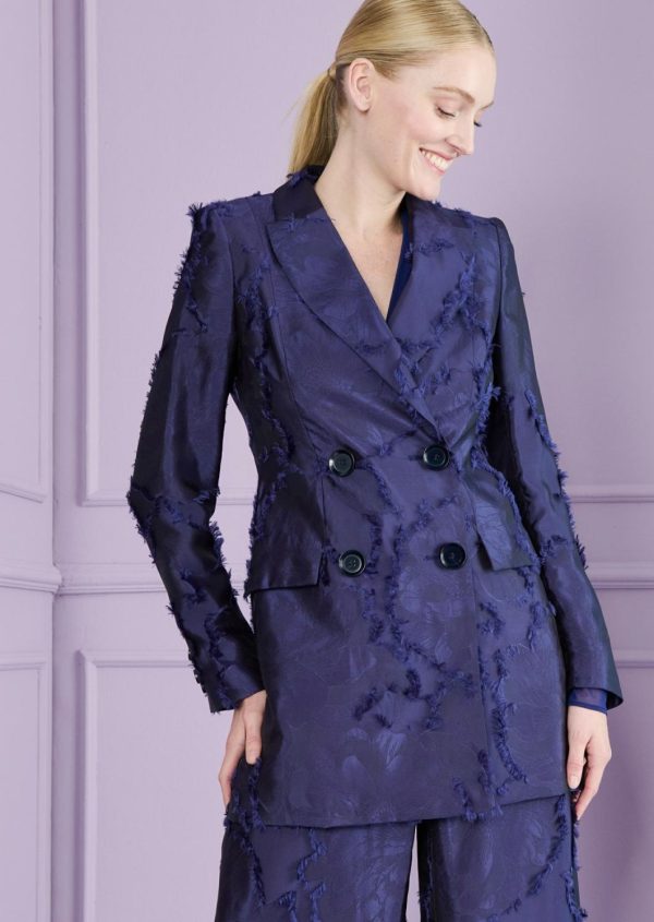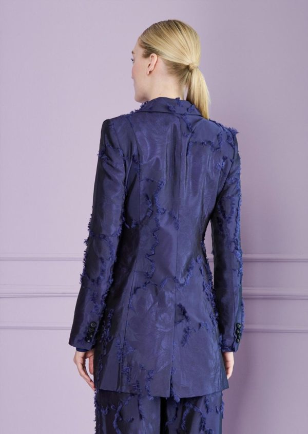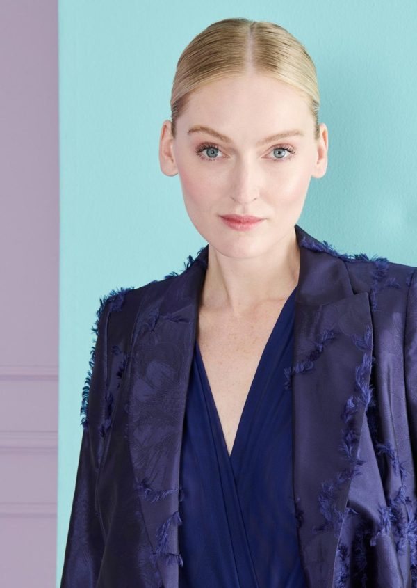 Our long, double-breasted blazer is a faithful, go-to piece for any situation. This season, it’s made from extraordinary fil coupé satin. The loose, trendy fit is chic yet suitable for the office. During the day, you can wear it over a T-shirt with your favorite jeans and flats, or with a clean-cut, fitted shift dress and pumps. For the evening, pair it with matching pants and elegant sandals.