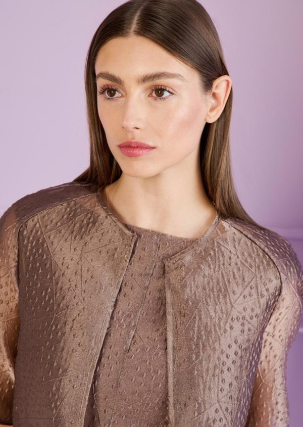 Straight and simple yet so smart: this is not just any little half-sleeve jacket. The breathtakingly beautiful fabric is so striking at first glance, while great details reveal themselves on closer inspection. Raglan sleeves give this classic jacket a sporty note. The boxy fit looks modern but not too casual when teamed with the matching cocktail dress. At the registry office, the jacket is the perfect enhancement to the matching cocktail dress by Talbot Runhof but also looks stunning teamed with more casual looks.