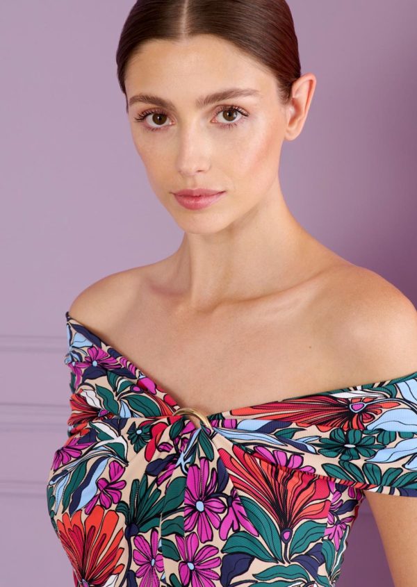 - off-the-shoulder neckline with metal ring detail (nickel free)