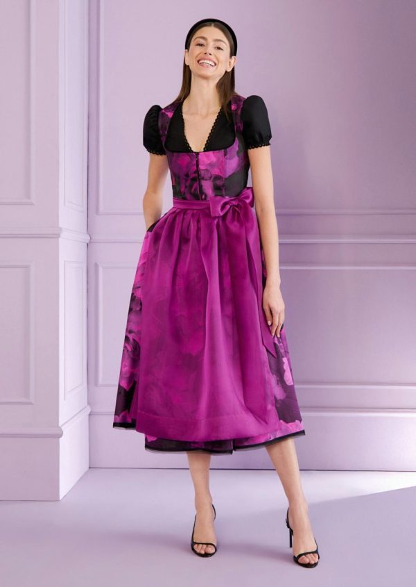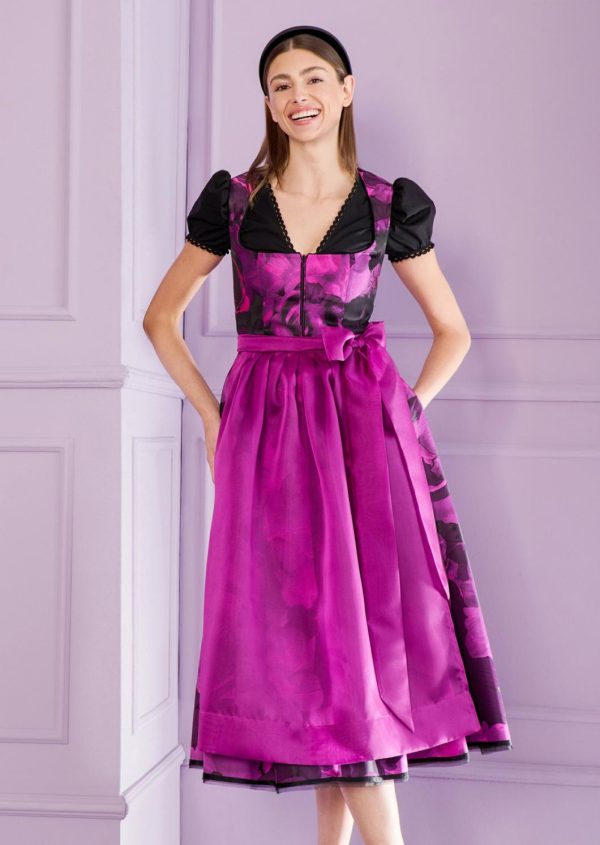 This Talbot Runhof dirndl gives your Oktoberfest look an incomparable touch of glamor and charm. The traditional cut remains respectfully classic, but is reimagined in a modern, stylish way through the brand’s signature design aesthetic. A highlight is the elegant floral jacquard, which invites you to dance thanks to its lightweight look and feel. The delicate organza apron perfectly complements the ensemble and creates a harmonious balance between tradition and contemporary elegance. The zipper at the front makes it easy to put on and take off. The classic cut elegantly showcases the décolleté, while the feminine midi length creates a timeless silhouette – ideal for Oktoberfest and other special occasions.