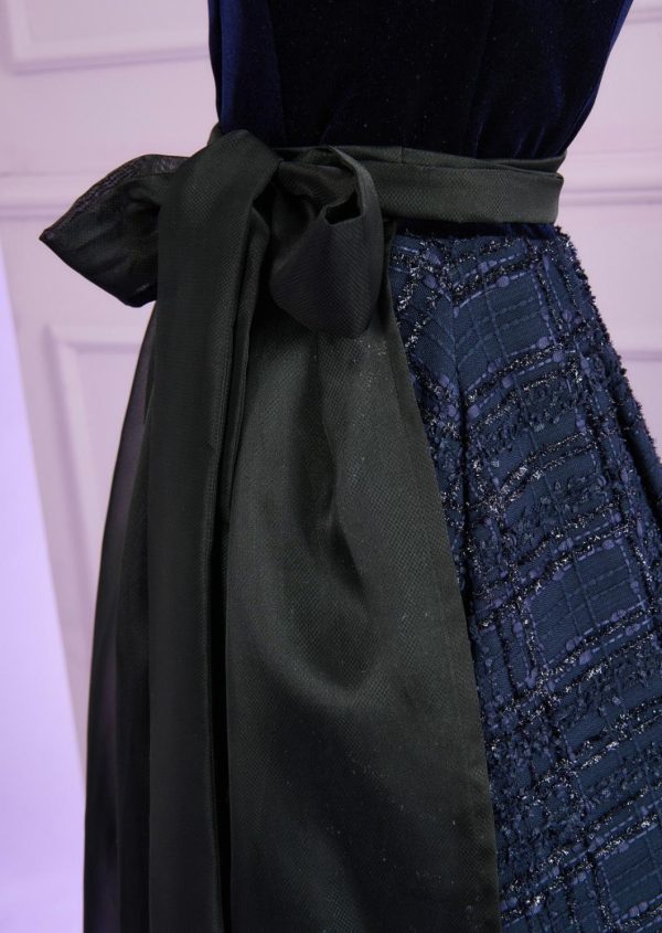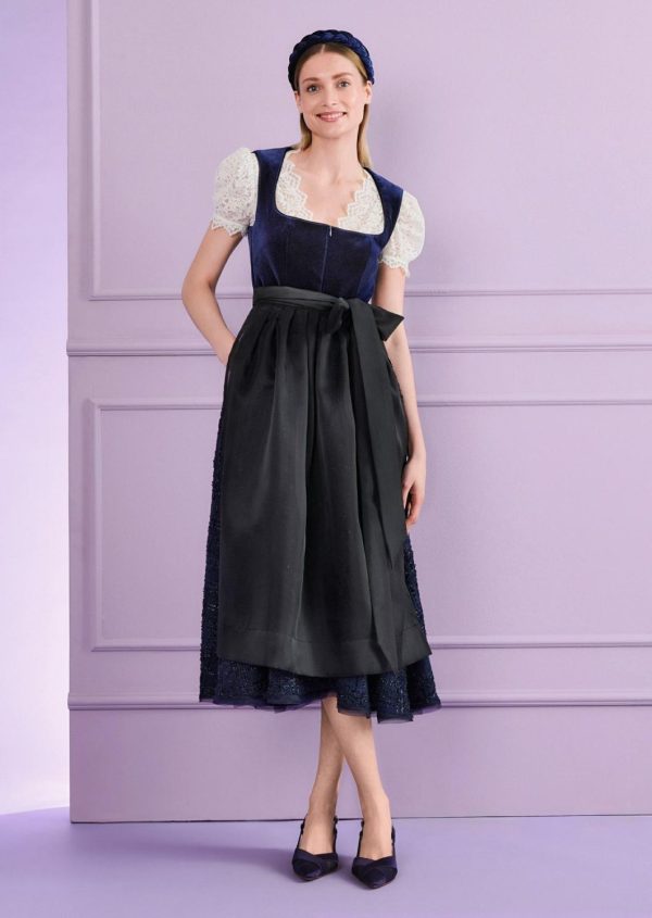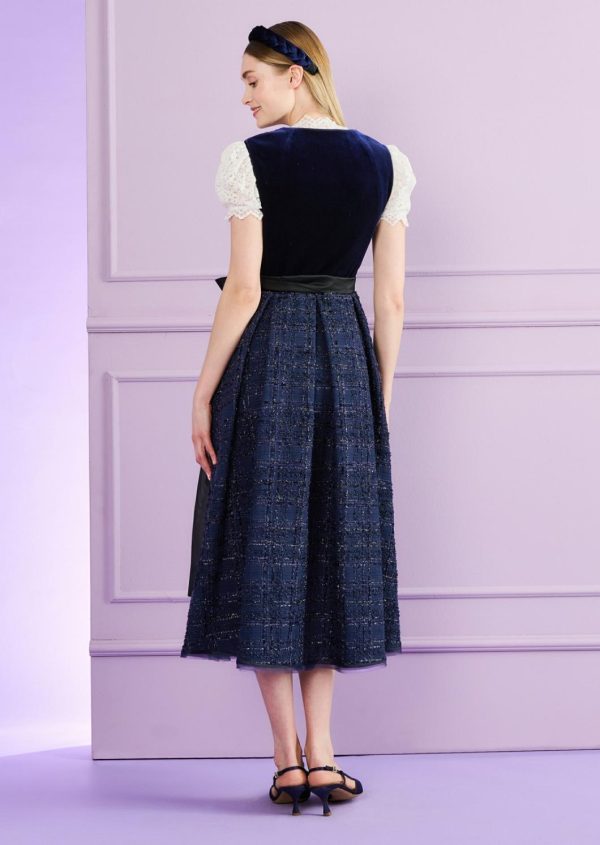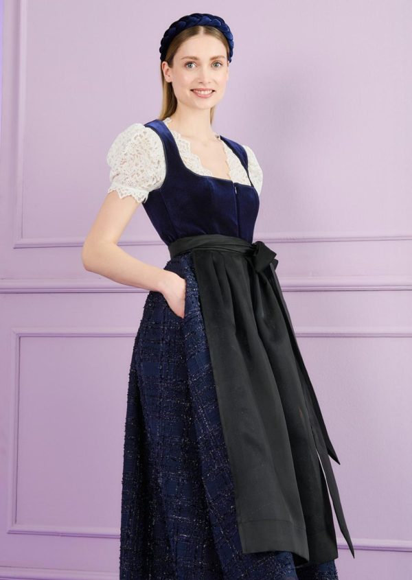 The Talbot Runhof dirndl gives your Oktoberfest look a certain glamorous charm. The traditional cut remains respectfully classic, but is re-imagined in a modern way through the brand’s signature design aesthetic. The top, made of deep shimmering velvet, gives an opulent radiance, while the skirt, made of Linton tweed, delights with a surprising design twist. The delicate organza apron stylishly rounds off the ensemble and strikes the perfect balance between traditional and modern. The practical zipper at the front makes it easy to put on and take off, while the classic cut elegantly accentuates the décolleté. The feminine midi length also ensures a timeless silhouette that will stand out at Oktoberfest and other special occasions.