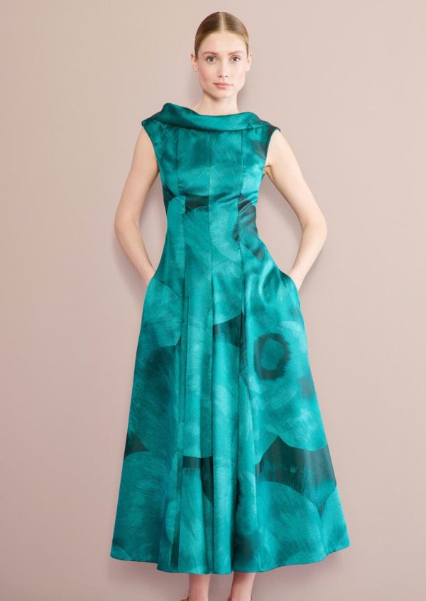 regards from the fifties! and from all the fabulous dance events that are screaming out to make a comeback at this time of year. make sure you’re already perfectly prepared with this cocktail dress. even if you don’t really like to dance, the luxurious panel-cut fit & flare dress in a stunning floral jacquard with slanted side pockets will conjure up particularly attractive hips and waist. the shorter length offers the ideal opportunity to give your most flamboyant swing shoes an airing.