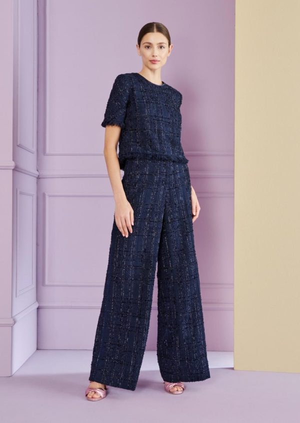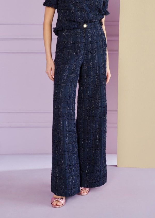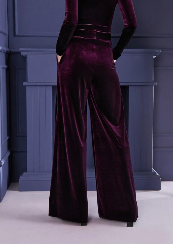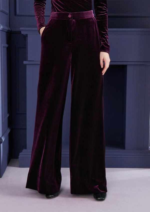 On the lookout for a striking pant look for the evening? Then this piece is perfect for you. With a high waistband and a wider, straight leg, these pants add glamorous variety to any event. The fabric, our flowing stretch velvet with a wonderful sheen, does the rest. Wear it with an elegant velvet top or a casual T-shirt and heeled shoes for a cool brunch look.