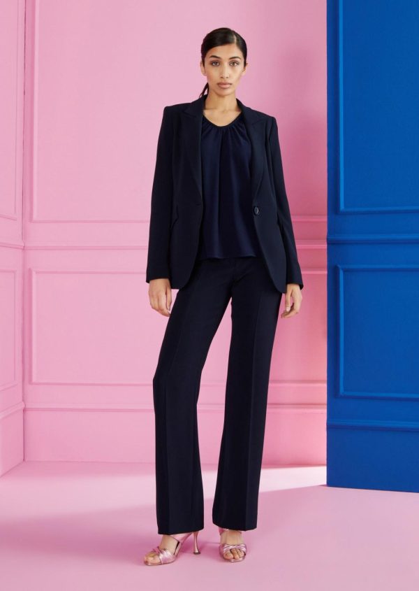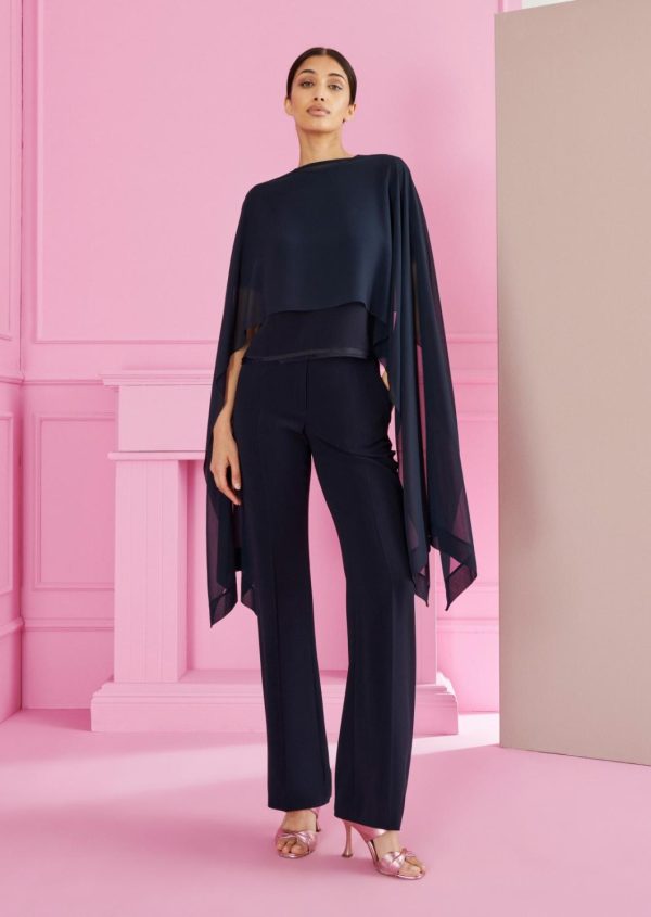Legs like a supermodel! Our elegant trousers, made of a comfortable stretch triacetate crepe, literally flow down your body like a flattering compliment; especially because of a crisp cut around the butt. On top of that the practical pockets as well as trouser pleats make the classic tailoring look functional. Wear our style in combination with the matching blazer to the office or to the next important art fair. Combined with a blouse and flat shoes, you’ll be amazed by their versatility.