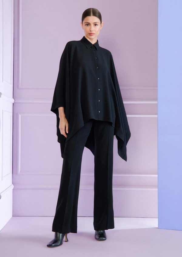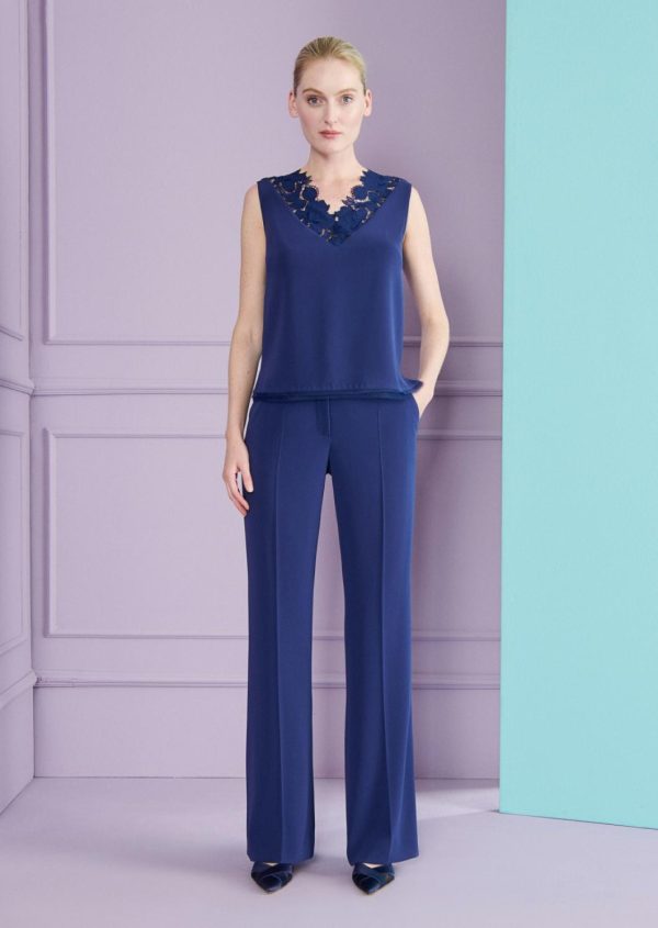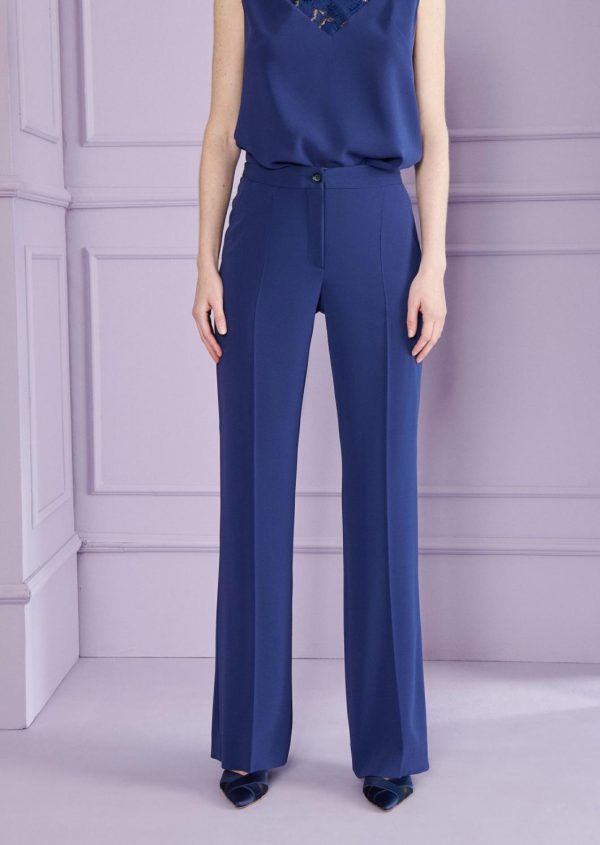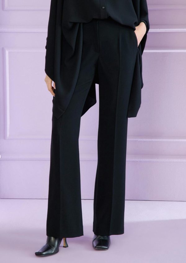 Legs like a supermodel! Our elegant trousers, made of a comfortable stretch triacetate crepe, literally flow down your body like a flattering compliment; especially because of a crisp cut around the butt. On top of that the practical pockets as well as trouser pleats make the classic tailoring look functional. Wear our style in combination with the matching blazer to the office or to the next important art fair. Combined with a blouse and flat shoes, you’ll be amazed by their versatility.