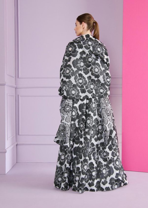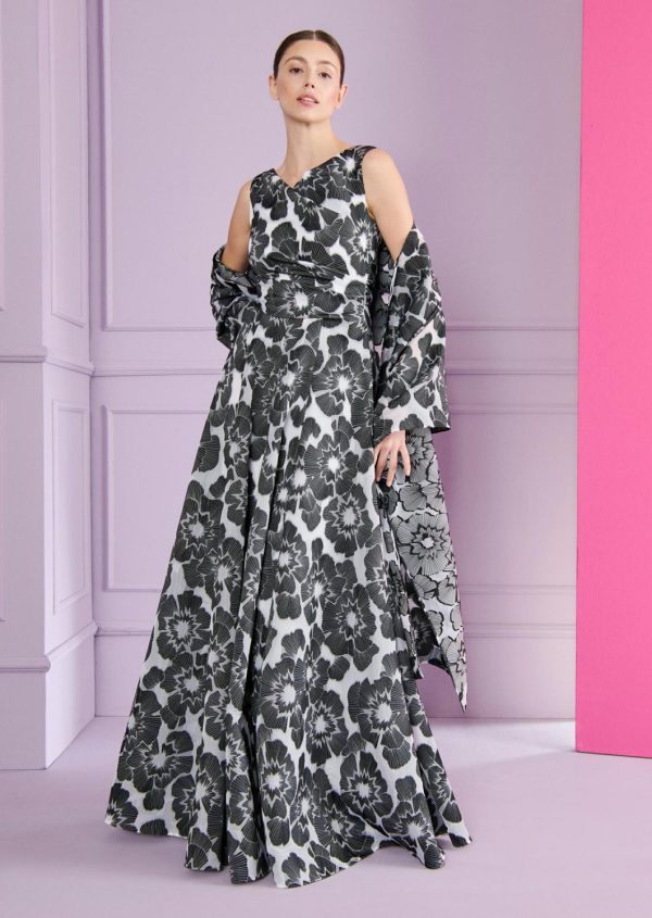 this stole, made from a beuatiful floral jacquard, is so glamorous and elegant, you won’t need anyone else to caress your shoulders on those brisk, balmy evenings. it is also the perfect accessory for the dance floor. combine with our matching dresses or gowns or simply style with a more basic kind of evening style.