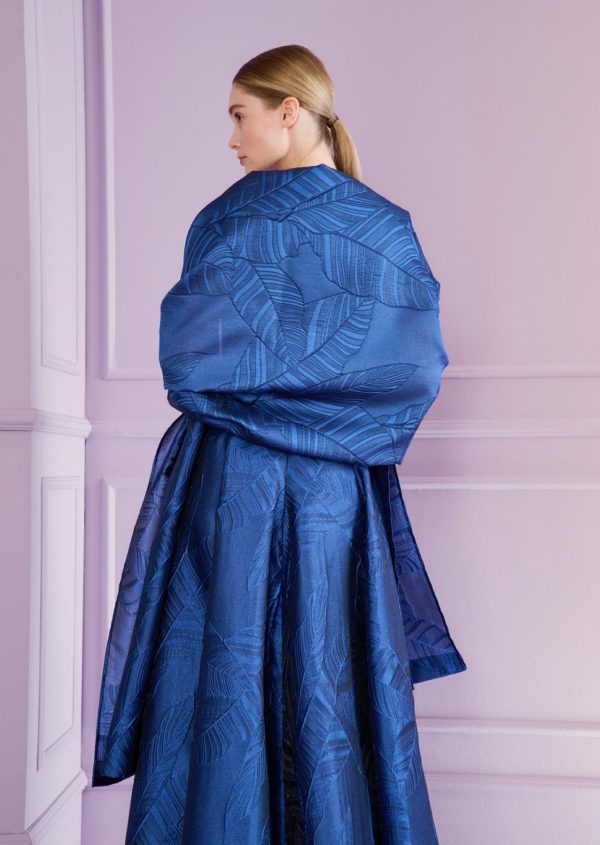 this stole, made from a beautiful leaf jacquard, is so glamorous and elegant, you won’t need anyone else to caress your shoulders on those brisk, balmy evenings. it is also the perfect accessory for the dance floor. combine with our matching dresses or gownsor simply style with a more basic kind of evening style.