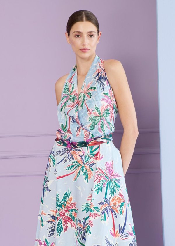 An uncomplicated go-to piece is worth its weight in gold, especially when you want to look summery and glamorous. Just like this halterneck top. It simply goes with everything! The décolleté is accentuated without revealing too much skin. And while this sleeveless top is cut to show off your shoulders, it also looks fabulous worn under a blazer. It’s perfect for pairing with pants or a breezy summer skirt!