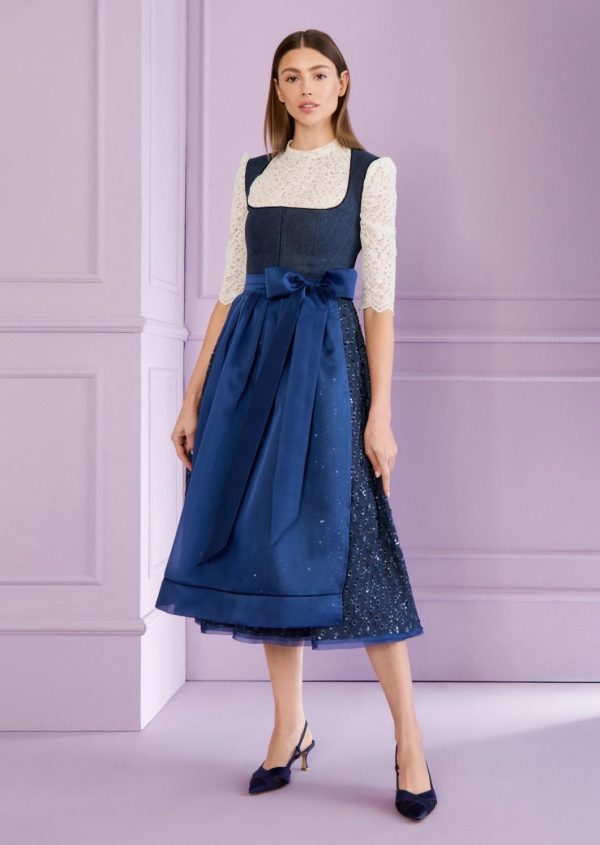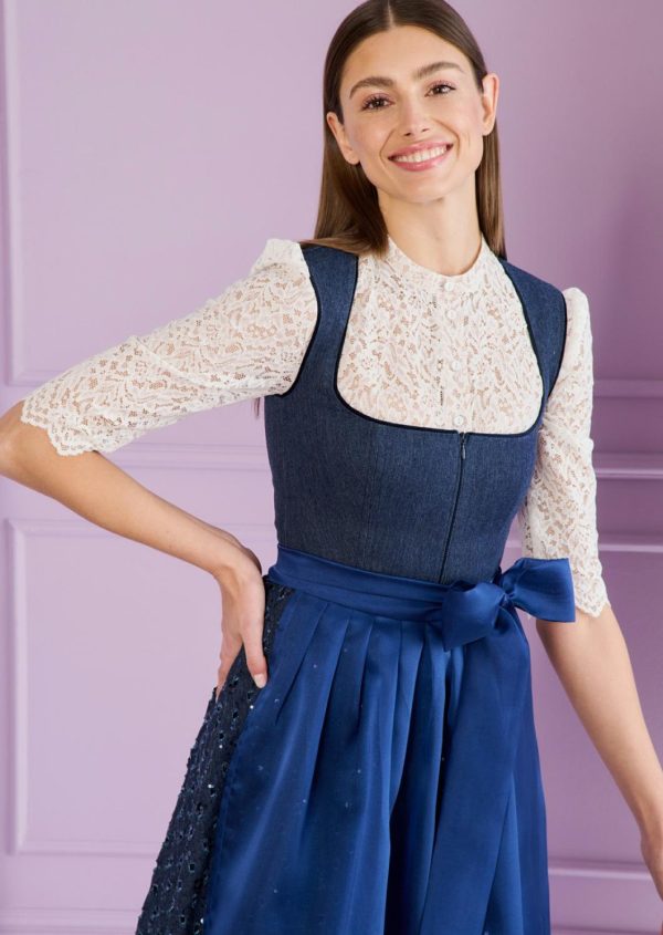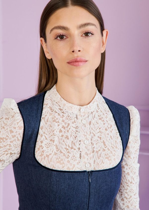 Now things are heating up – with our new dirndl blouse! This is ideally combined with one of our Talbot Runhof dirndls to create a stylish and harmonious look. This season, we present a decidedly elegant interpretation of the traditional design: high-necked, with a short stand-up collar and mid-length sleeves. The understated design looks sophisticated and leaves room for the imagination – resulting in a subtly seductive effect. The blouse is made of delicate lace, which contrasts beautifully with glamorous dirndls made of sequin-embroidered tweed or other fine fabrics. A perfect addition to your elegant Oktoberfest outfit!