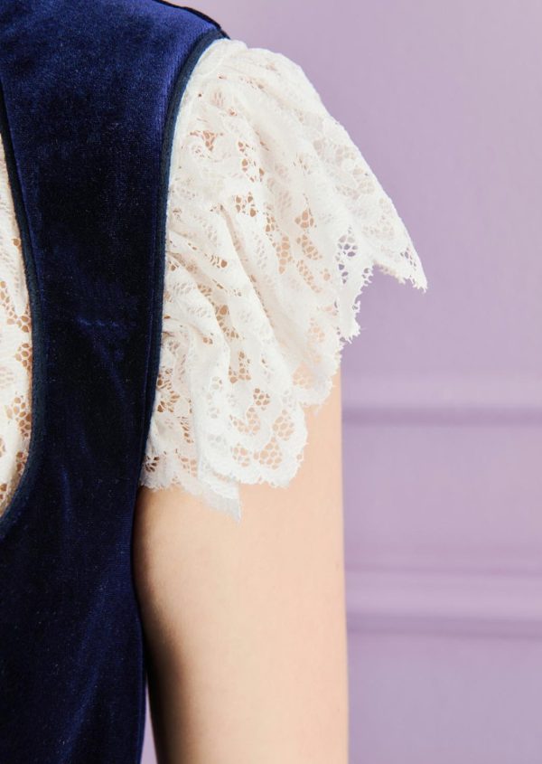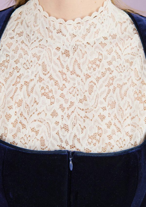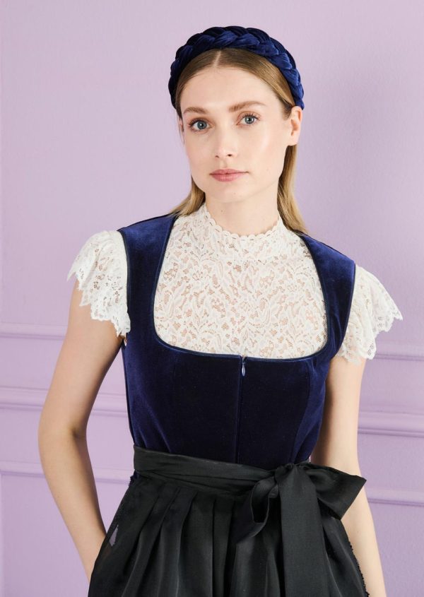 This dirndl blouse complements your new Talbot Runhof dirndl perfectly. We have made it from a fine, lightweight lace, which gives it a relaxed yet traditional look. The short stand-up collar looks modern and elegant. The short flounce sleeves add a playful twist to the design and are perfect for the Oktoberfest atmosphere. Nothing stands in the way of a hearty and, above all, stylish party!