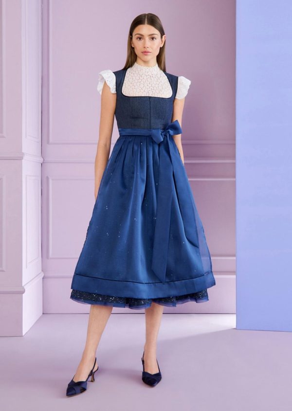 This dirndl blouse complements your new Talbot Runhof dirndl perfectly. We have made it from a fine, lightweight cotton lace, which gives it a relaxed yet traditional look. The short stand-up collar looks modern and elegant. The short flounce sleeves add a playful twist to the design and are perfect for the Oktoberfest atmosphere. So nothing stands in the way of a hearty and, above all, stylish wiesngaudi!